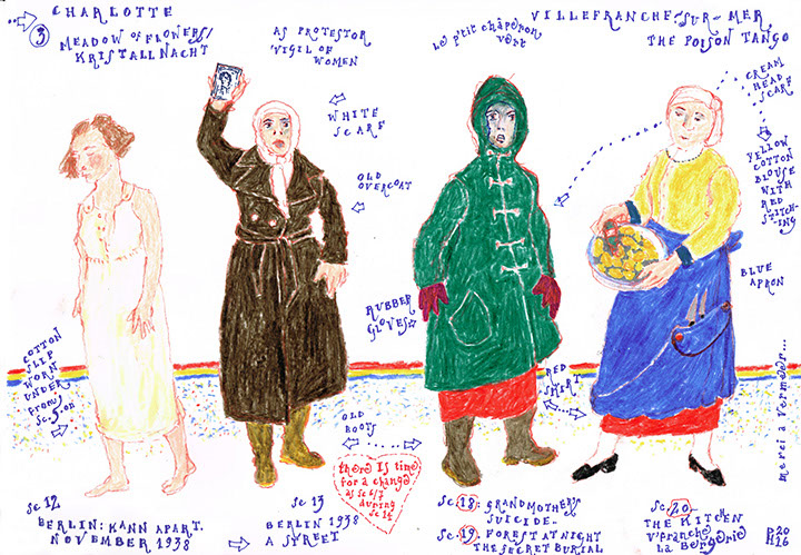 An exhibition of the drawings created for this production, with references to Charlotte’s visions of her remembered past.