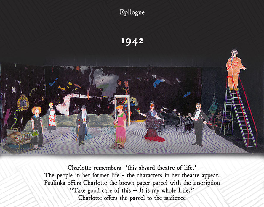 The interpretation of the three dimensional world of Charlotte Salomon is being manufactured by Domus/Idea in Vilnius, Lithuania, using a combination of laser technology in thin Baltic Ply and cardboard in a flat pack system, with hand painting by Pamela Howard.