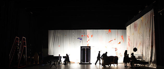 Charlotte: A Tri-Coloured Play with Music is a multi-national collaboration with a core creative team from Canada, UK, and Czech Republic, plus seven actor-singers and three musician-performers. The essential quality of our “singspiel” is the total synchronicity of word, image, and music. We propose an art installation, inspired by Charlotte and inhabited by performers. It is conceived as a through music/theatre piece, each moment flowing into the next without any breaks, much like the waves of the sea in the final images of Charlotte’s Life? Or Theatre?