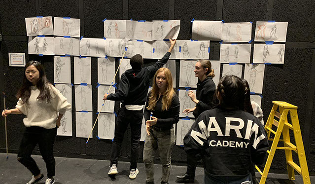 The drawings in the exhibit illustrate how Professor Howard transforms her ideas—from painting to sculpture; directing to psychology; business to advertisement; biography to storytelling. To accurately convey her thoughts, Professor Howard combines diverse media and techniques with found and repurposed materials which provide Professor Howard with the absolutely right feeling for a project. As she draws a character or scene, Professor Howard adds a layer of personal history and experience and brings the drawing to life.
